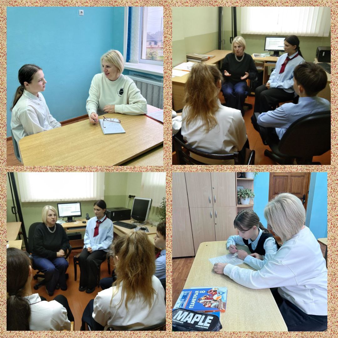 11.11.2025 специалистами ГУО «Социально-педагогический центр Слонимского района» в рамках консультационного пункта в ГУО "Поречская базовая школа Слонимского района" проведены: групповая консультация для педагогов «Роль педагога в формировании благоприятного психологического климата в классном коллективе», индивидуальные и групповые консультации с несовершеннолетними, консультация-диспут с учащимися 7 класса «Я и мои друзья».