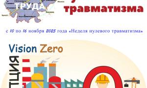 13 ноября 2025 года проводится областной день охраны труда с единой повесткой "Культура производства, трудовая и производственная дисциплина - основа обеспечения безопасности труда", а так же с  10 по 16 ноября 2025 года проводится "Неделя нулевого травматизма".